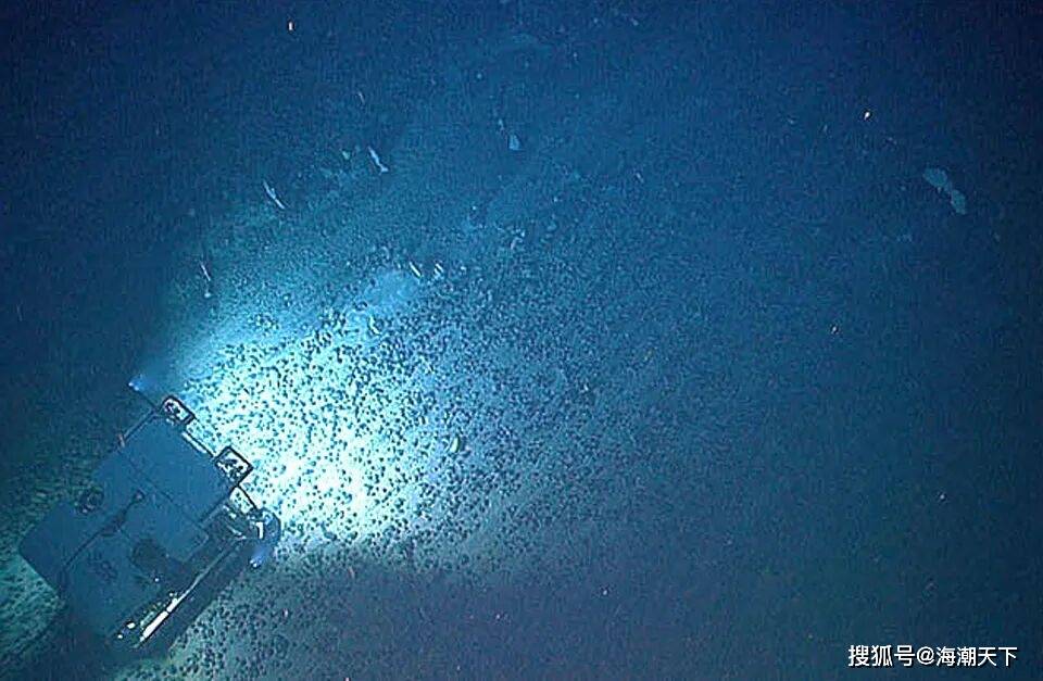 ▲上图:一架遥控潜水器正缓缓掠过深海海床上密布的多金属结核(polymetallic nodules)矿床。图片来源:美国国家海洋和大气管理局(NOAA)(图文无关)