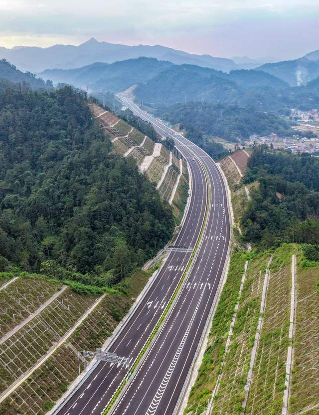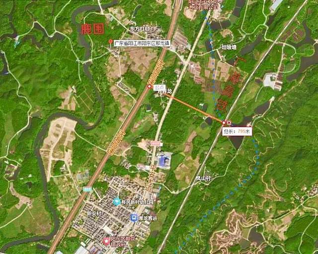 阳江恩平交界处鹿围附近325国道、高速公路、广湛高铁三线并行图