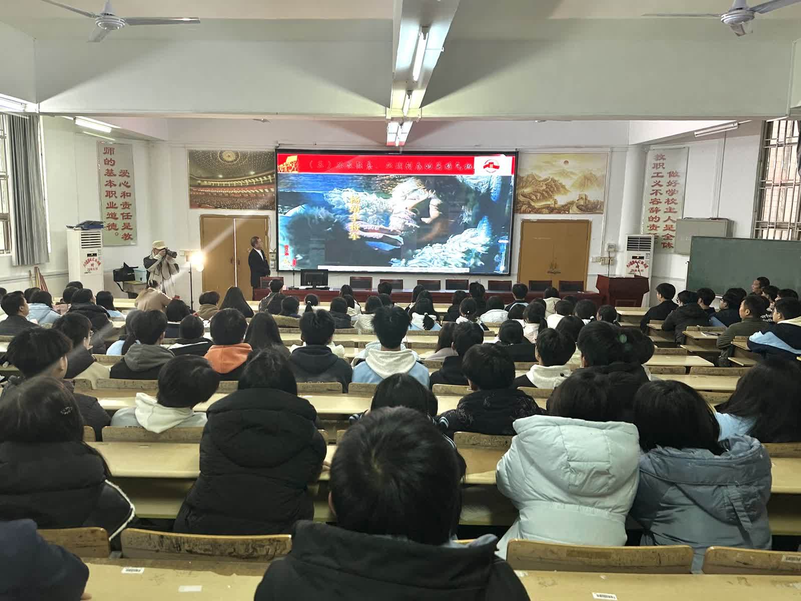 本次活动以抗战历史宣讲为主要载体,红色宣讲员紧紧围绕主题,深度挖掘本土红色资源,将其融入国家抗战历史的宏大叙事之中,向学生深情讲述烽火岁月中的抗战故事和英烈事迹,深刻阐释红色文化的时代内涵,引导学生从历史中汲取精神力量,厚植爱国情怀、坚定理想信念。随后,现场特别设置了有奖问答环节,学生们踊跃举手参与,在思考与互动中深化了对历史的认知。活动现场还为南京大屠杀死难者举行了庄严的默哀仪式,全场肃立,气氛凝重,在无声的追思中凝聚起勿忘国耻、奋发图强的共同意志。