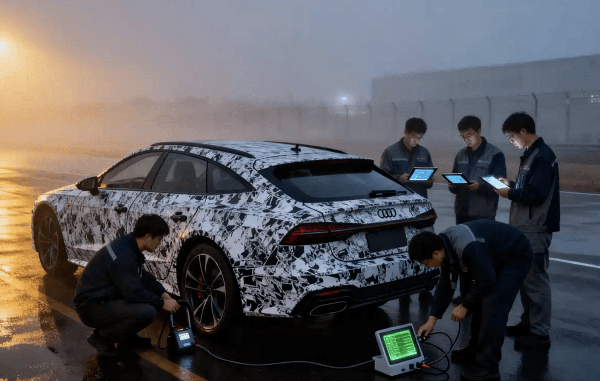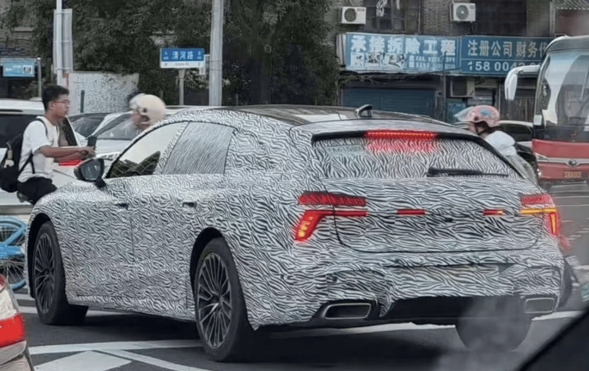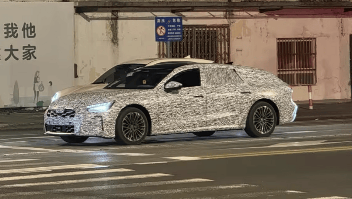 透过厚重的伪装,我们看到,新车整体的前脸造型还是和奥迪A6 Avant有点相似的,大尺寸的黑色蜂窝格栅,搭配全新的数字LED大灯组,据说可以改变大灯图案,依然很凶狠。