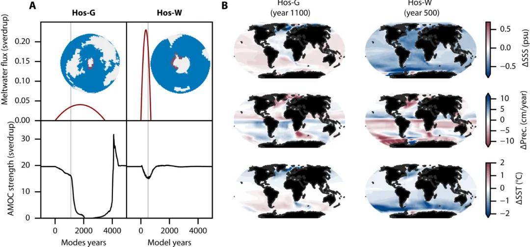 研究者表示,在这一项模拟数据之中,南极冰盖的融化水并不总是增加AMOC崩溃的风险,而是出现了逆转的过程, 那就是随着西南极冰盖融化,咸水被输送到北大西洋,这反而有助于大西洋经向翻转环流(AMOC)的运行。