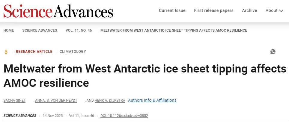 地球小冰河可以改变了? 《科学进展》杂志发表研究,在南极冰川融化之下找到了转变节点,可以改变或者说逆转AMOC崩塌迹象,这是怎么回事?