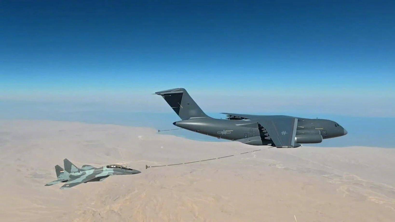运油-20加油机为米格-29战斗机加油