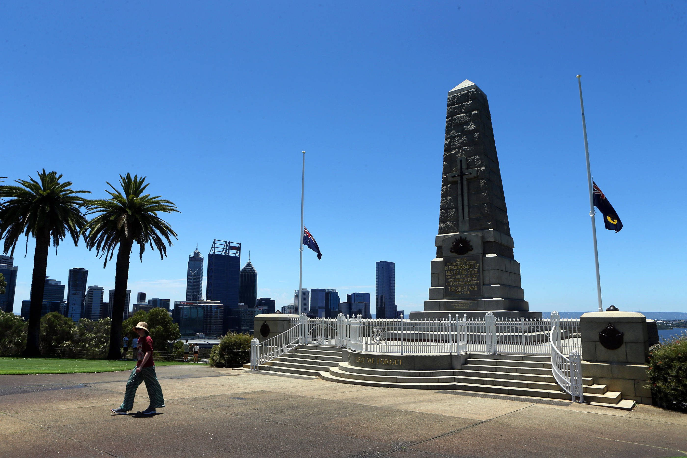12月15日,澳大利亚珀斯的国王公园降半旗悼念悉尼邦迪滩枪击事件遇难者。 新华社发(周丹摄)