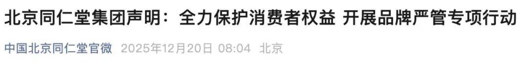 12月20日,中国北京同仁堂(集团)有限责任公司发布声明: