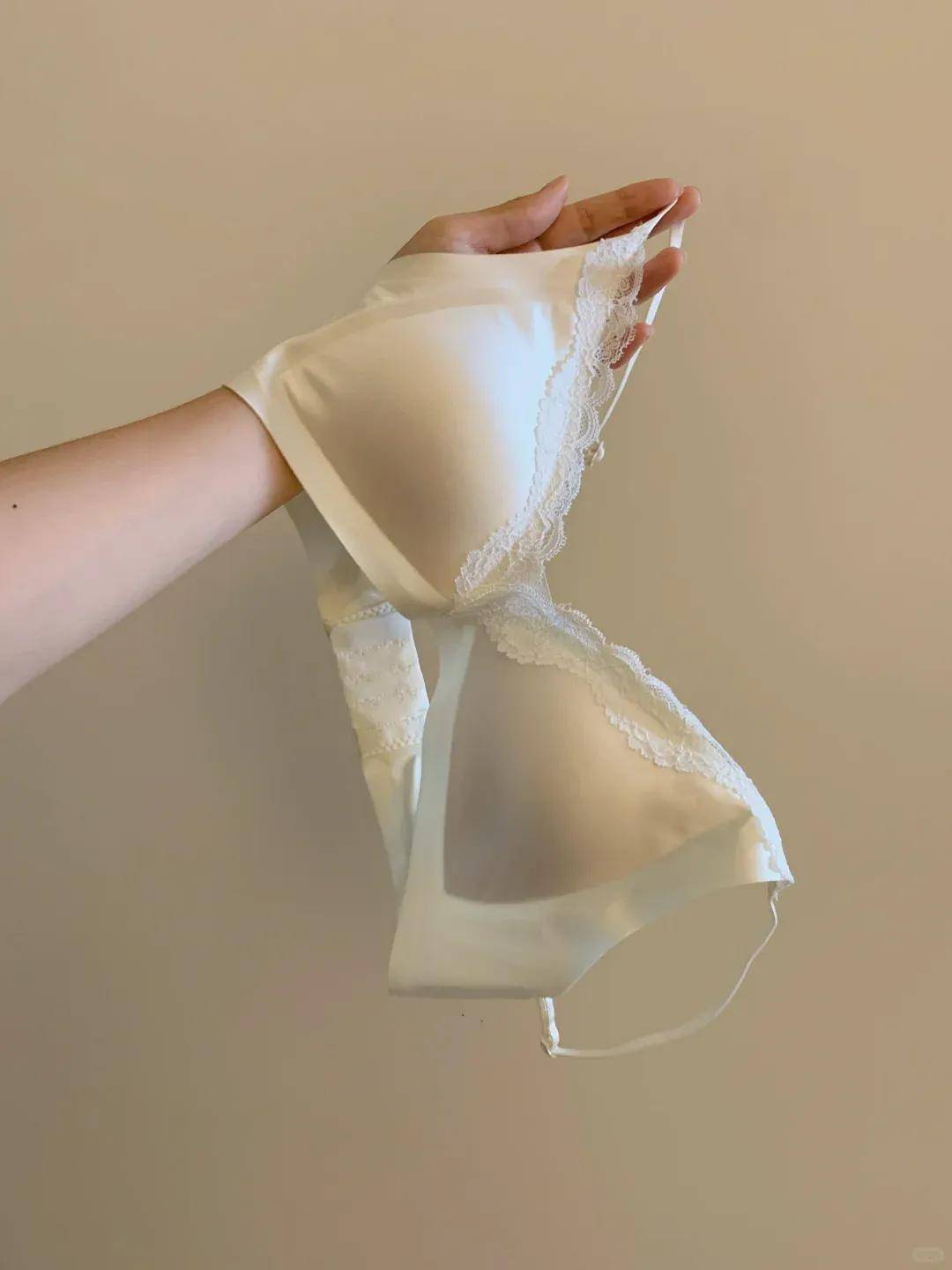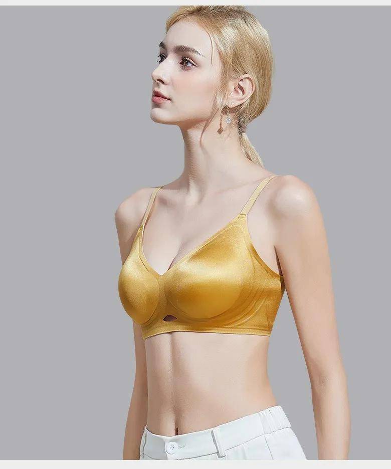 它的缎面会随着角度、光线变化,折射出自然温润的光泽,关键是面料亲肤舒适,而且无钢圈、无胶骨,穿在身上轻盈又不会勒~