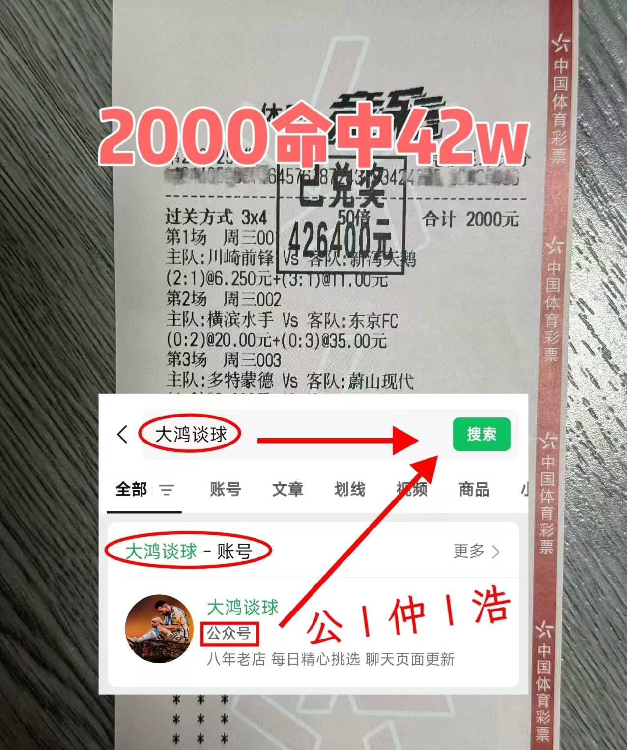 今日方案已出,关注公众号 【大鸿谈球】 战绩可查, 获取每日精选二串方案含胜平负比分参考!