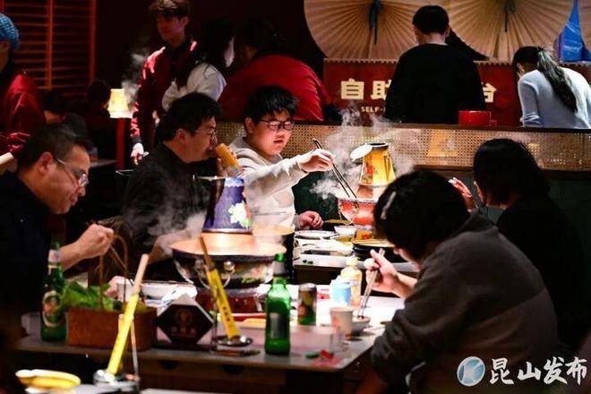 寒冷的天气里,一顿热气腾腾的美食最能抚慰人心。元旦假期,昆山金鹰国际购物中心的各家火锅店纷纷迎来客流高峰,店内人声鼎沸、暖意融融。小昆在一家品牌火锅店内看到,食客们围坐在餐桌旁,汤底咕嘟冒泡,涮着鲜嫩的羊肉、毛肚和各类蔬菜,欢声笑语不断。“冬天就爱吃火锅,一家人围在一起热热闹闹的,既能解馋又能取暖。”市民王女士说。