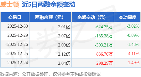 证券之星消息,12月30日,威士顿(301315)融资买入1865.65万元,融资偿还2490.4万元,融资净卖出624.75万元,融资余额2.01亿元。