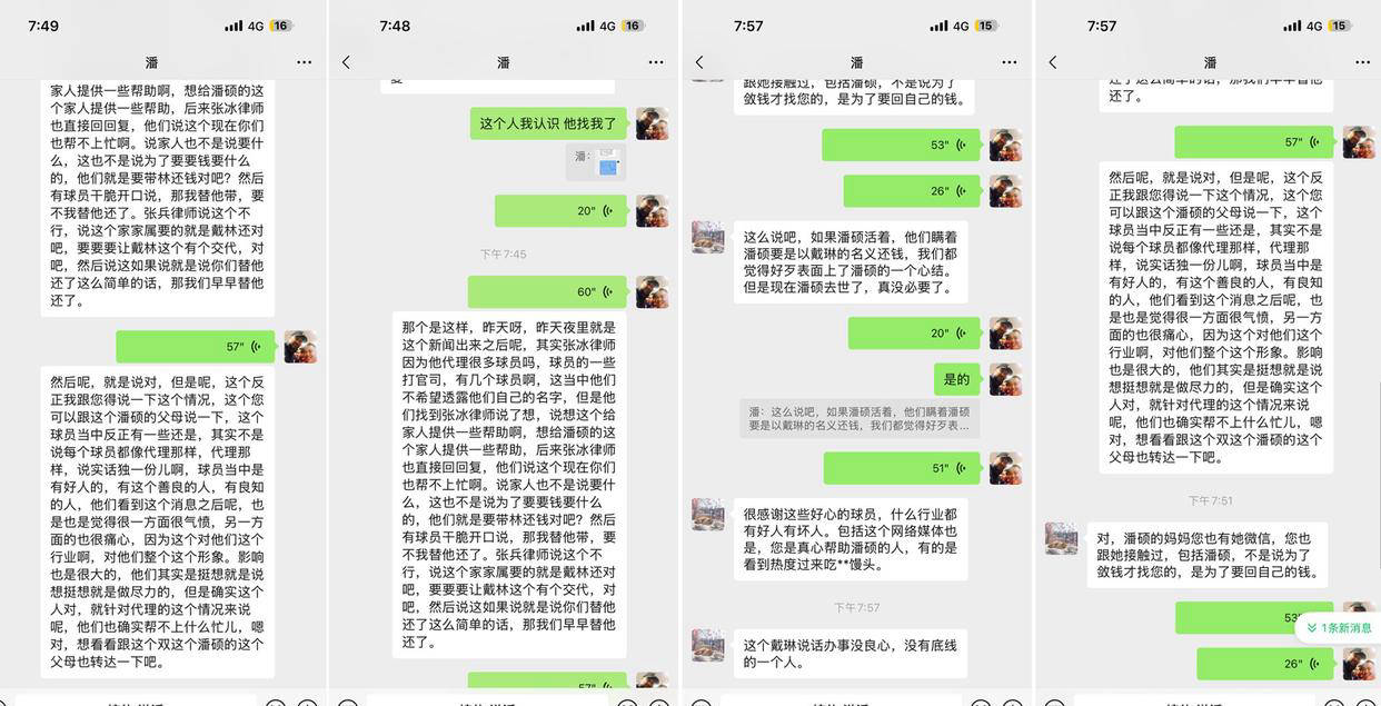 据透露,戴琳在事件曝光后不仅未及时还款,还辱骂了潘硕这位患病的球迷。潘硕的姑姑坦言:“孩子的父母都来自农村,不懂网络,也不方便麻烦别人。家属是通过孩子微信才了解到这些情况。”她主要发微博是为了对陌生人的帮助表示感谢,同时也因看到戴琳的言辞而感到愤怒。媒体报道显示,12月15日,戴琳曾对潘硕的母亲说潘硕“不要钱了”。但潘硕姑姑反驳,“如果孩子不要钱,怎么会不停地发微信催讨欠款?戴琳明知潘硕昏迷,仍坚持要求他核对账目。”据了解,2023年1月,戴琳在直播时向潘硕借款7万元,并签下欠条,而潘硕则背着家人将钱转给了他。