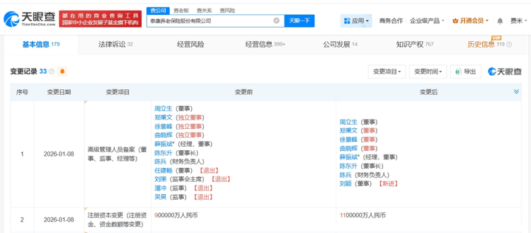 本次工商登记更新后,泰康保险集团持股比例从99.33%微升至99.45%,泰康资产管理有限责任公司持股比例微调至0.55%,无新增外部股东,新增资金全部计入注册资本。