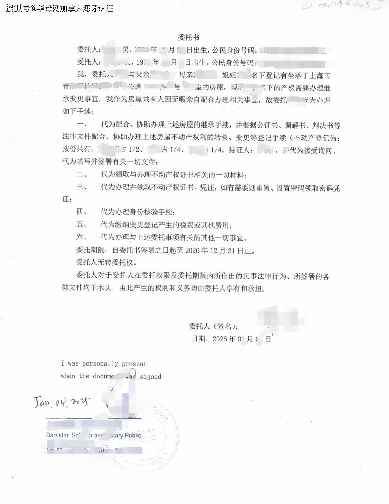 在实际操作中,上海不动产登记部门明确要求:境外继承人出具的《房产继承变更委托书》须在文件出具国完成公证,并办理海牙认证(Apostille),方可在中国直接使用。此前,李先生曾向其他机构咨询,被告知流程复杂、周期较长,且对“按份共有”条款的表述把握不准,担心因内容不规范被国内窗口退件。