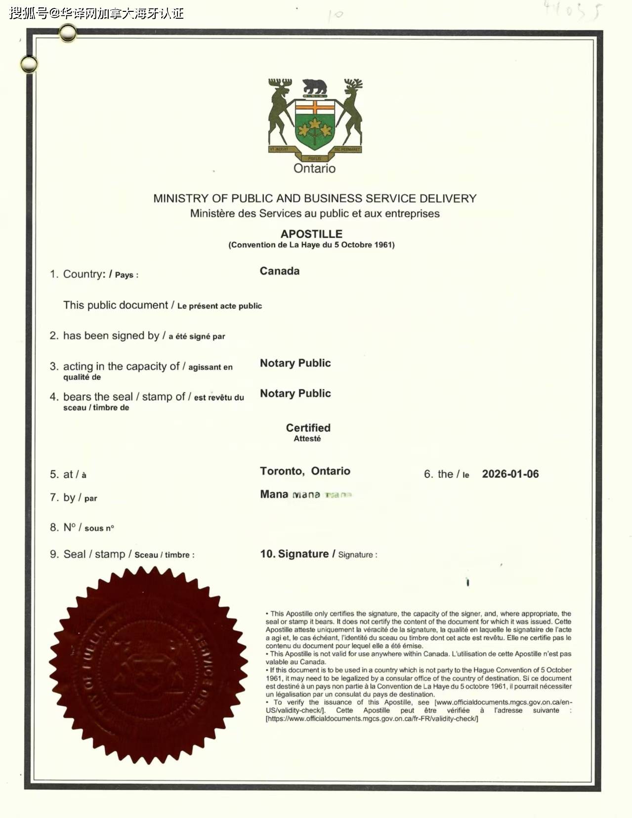文件定稿后,李先生在加拿大当地由合资格公证人当面签署委托书并完成公证。我方同步对接安大略省主管机关,直接递交海牙认证申请。整个流程采用远程委托方式,当事人无需回国,也无需跨省奔波。