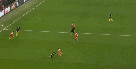 比赛第39分钟,场上出现了一次颇具争议的判罚。伦纳特-卡尔在中路强行突破,在与对方球员的对抗中疑似被拉拽倒地,然而裁判并未作出点球的判罚,令拜仁球迷颇感不满。一分钟后,奥利塞开出角球,格雷罗在门前抢点头球攻门,但皮球高出横梁,双方在上半场比赛中均未能改写比分,以0比0结束了上半场的较量。