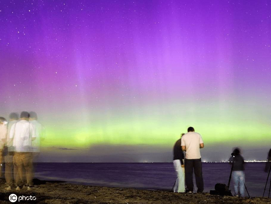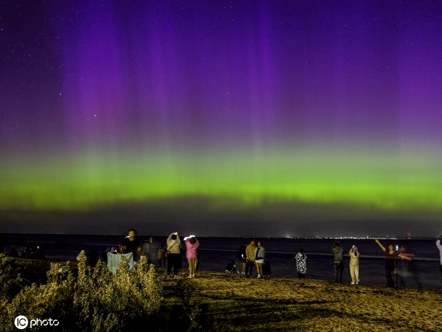 当地时间2026年1月20日,澳大利亚墨尔本,受地磁暴影响,北极光照亮夜空。