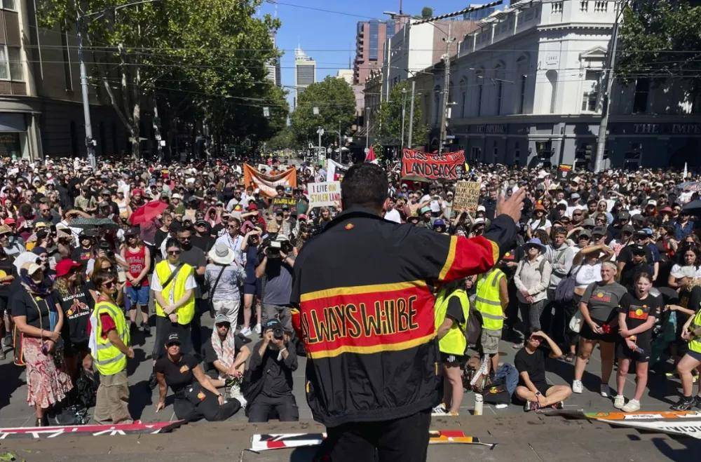 今天,数百人聚集在悉尼的Hyde Park,为原住民主权举行游行。