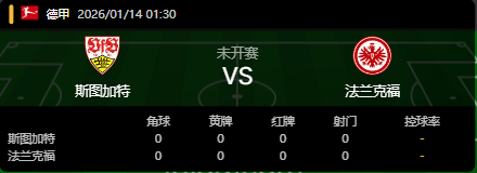 本场为德甲第17轮焦点对决(周二007),核心基调是“欧战资格卡位战”,直接决定两队冲击欧战名额的主动权归属。目前积分榜呈现紧密胶着态势:斯图加特以9胜2平5负积29分位列第五,与欧冠区积分持平,距离直接晋级名额仅一步之遥;法兰克福以7胜5平4负积26分排名第七,紧咬欧战集团,与欧联杯资格区仅差1分。此役对两队而言均不容有失——斯图加特渴望借主场强势态势抢占争四先机,同时向“克星”法兰克福复仇(近3次交手2负1平);法兰克福则需打破客场疲软困境、顶住伤病潮压力抢分,避免被身前球队拉开差距。