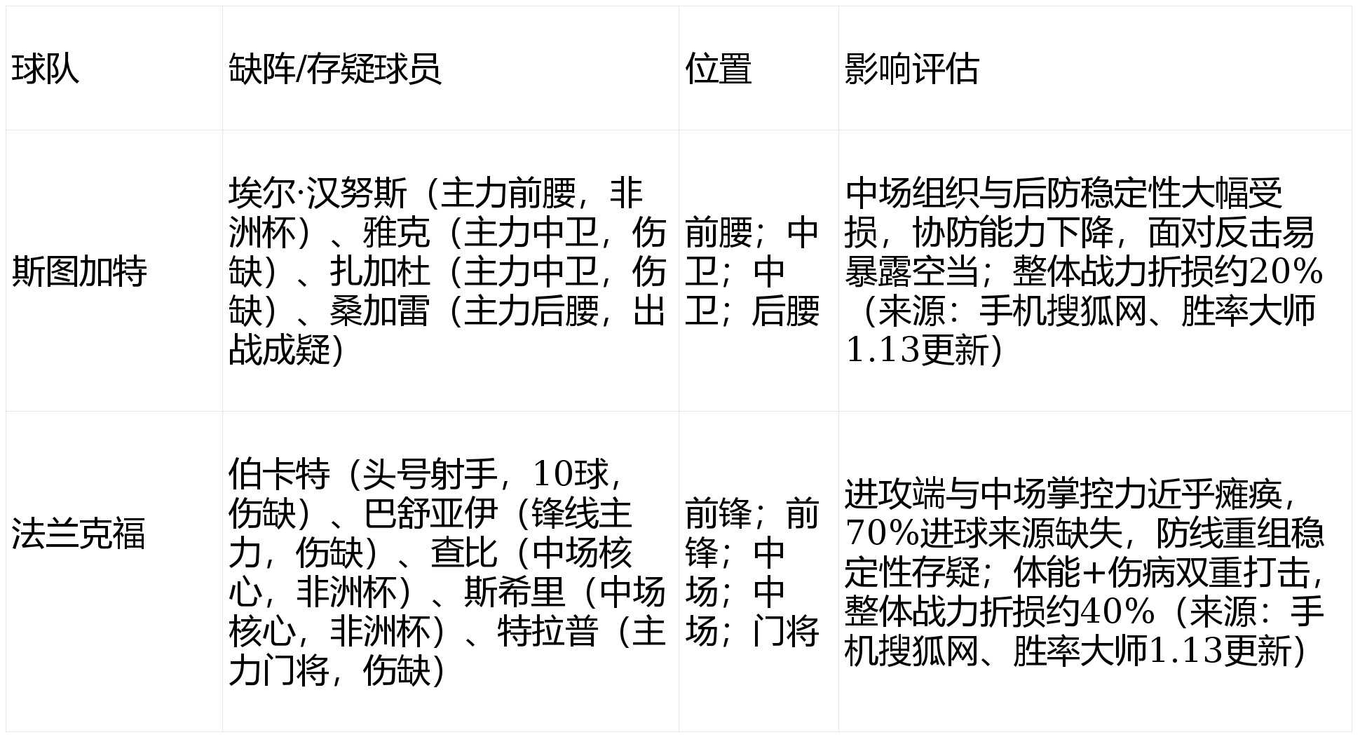 3. 极端研判:法兰克福 2-1 斯图加特(概率约20%)