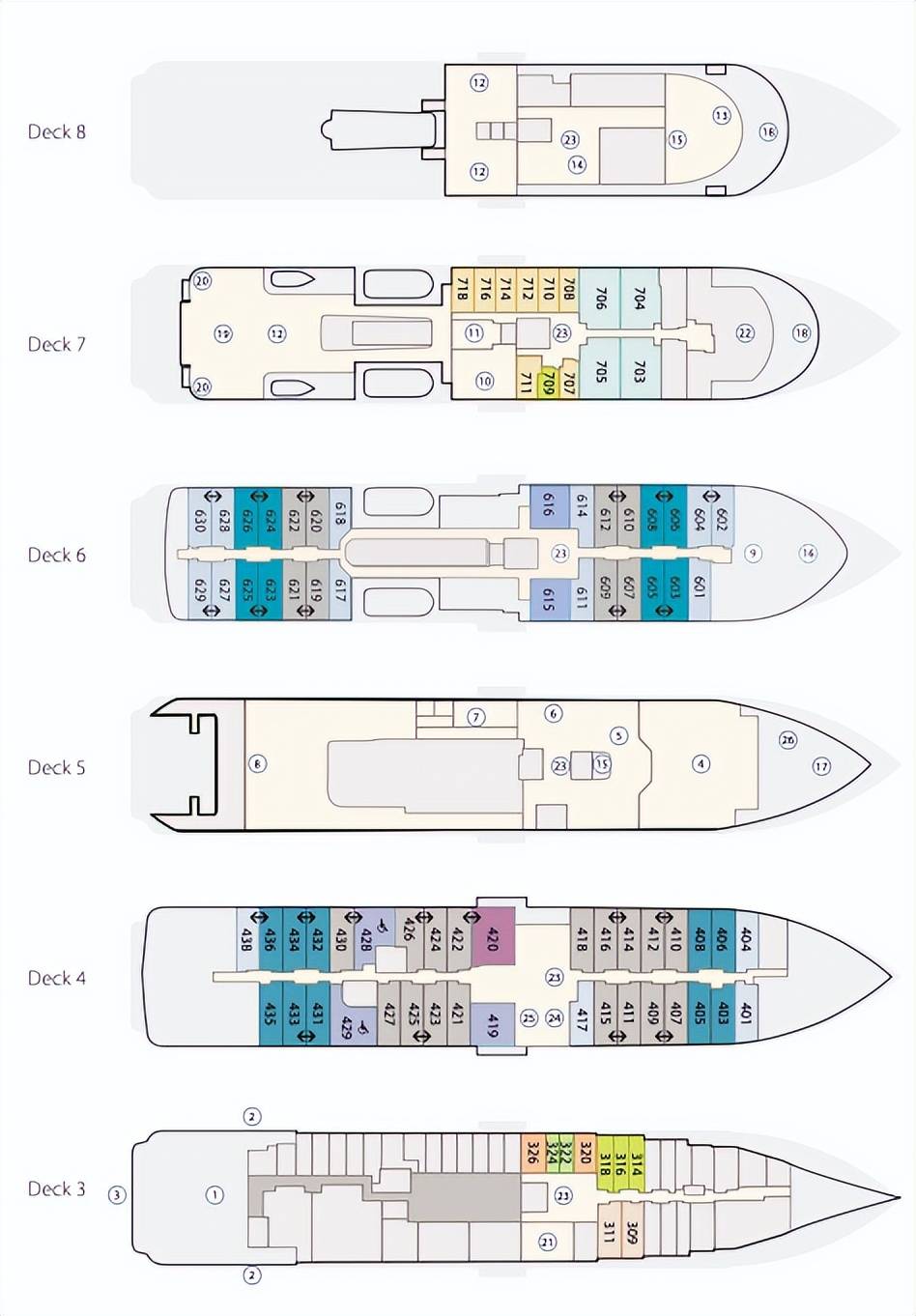 船舱数:86 间,11 种房型