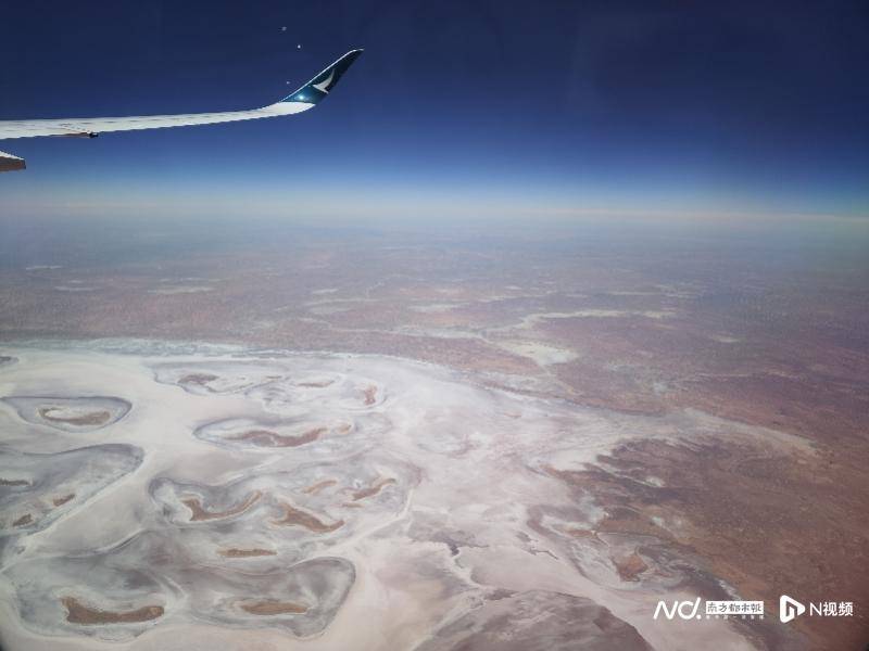 这条直航航线会途经澳大利亚最大的湖泊——艾尔湖。在能见度高的天气下,旅客可以从高空俯瞰这一壮观的浅水盐湖。(图/受访者提供)