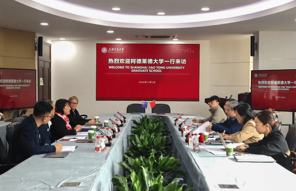12月3日,阿德莱德大学健康学部国际合作事务主任Amanda Page率团访问上海交通大学研究生院。研究生院院长邓涛、副院长常辉会见代表团一行,双方就推进联合培养博士学位项目、研究生国际化培养等方面进行了深入交流。