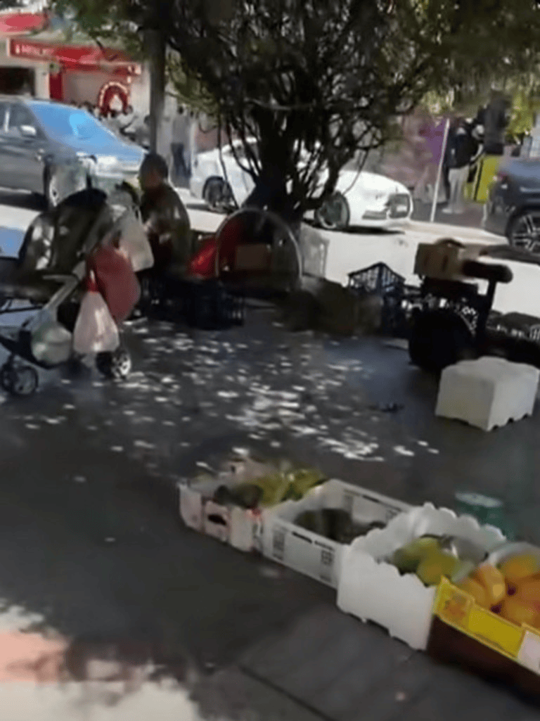 视频显示,在悉尼西南部Cabramatta区的主干道John Street,有大量摊贩在人行道上摆摊售卖蔬菜、熟食、各种生活用品等。